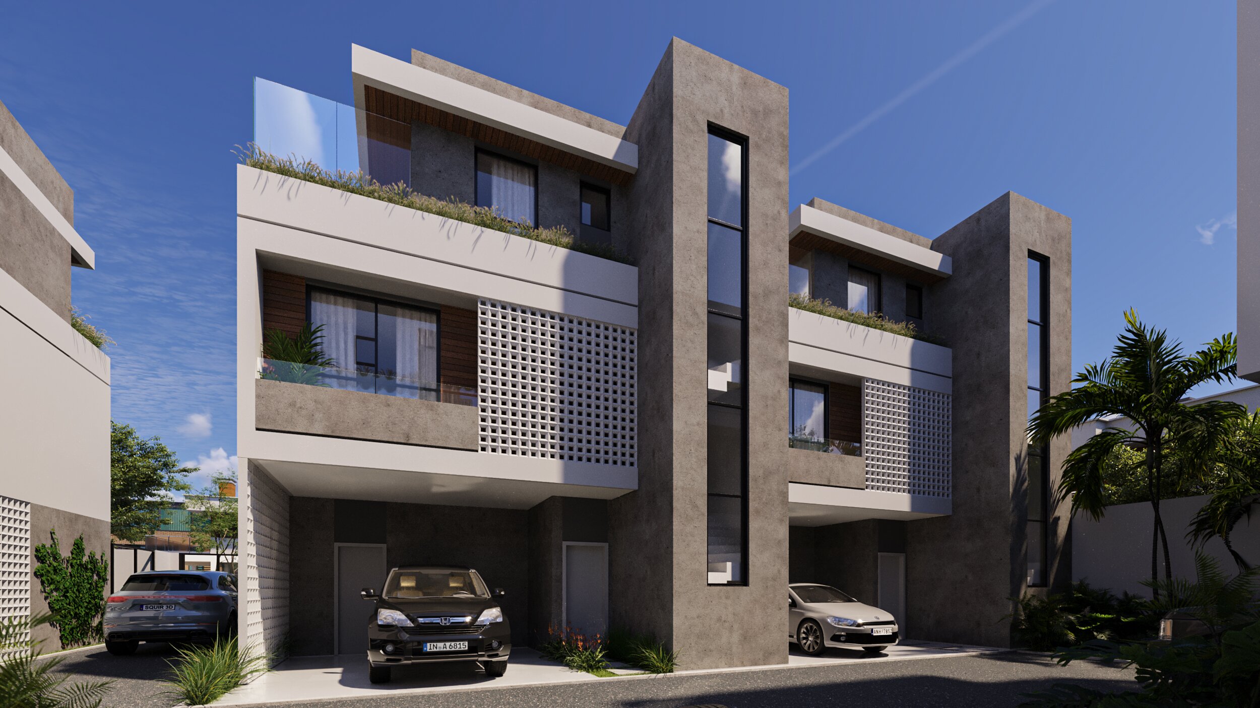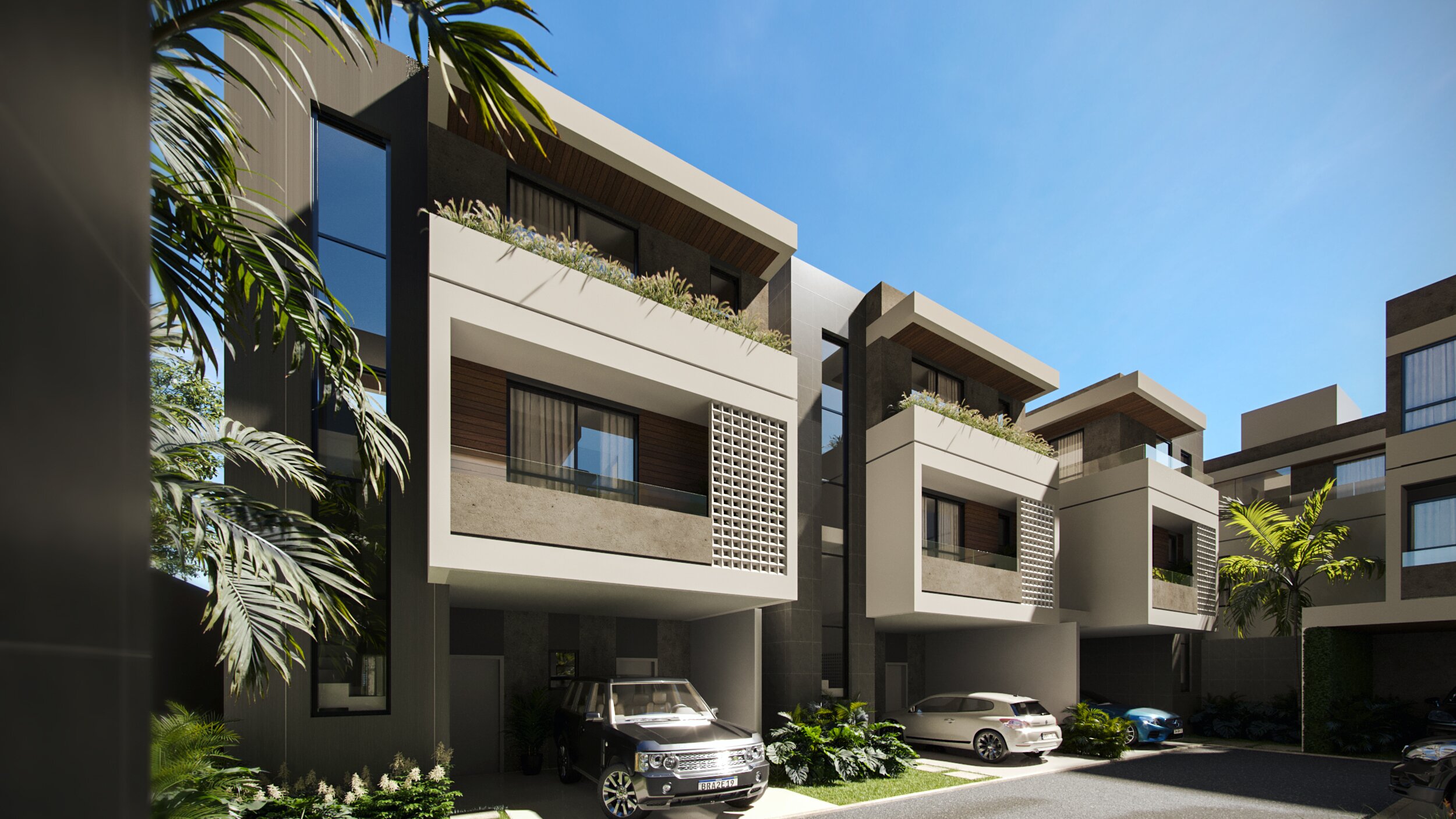 Sala integrada à cozinha, Lavabo, Lavanderia, Quintal nos fundos, 2 vagas de garagem, 3 suítes, área de circulação, terraço com jacuzzi, sala gourmet, home office, banheiro completo.