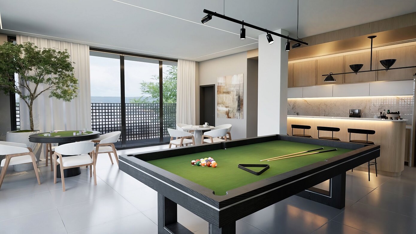 Entre os diferenciais do condomínio estão: • 2 espaços gourmet com terraço, sendo um deles com jacuzzi • Academia equipada com terraço • Lavanderia compartilhada • Coworking com terraço • Lounge com mesas de jogos, copa e lavabo • Bicicletário • Espaço pet