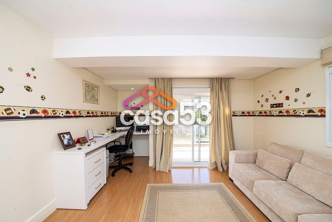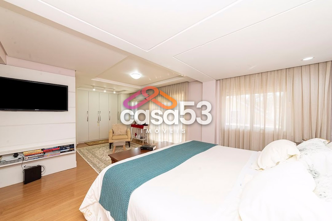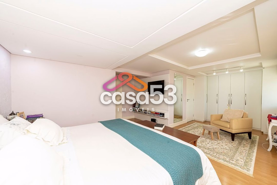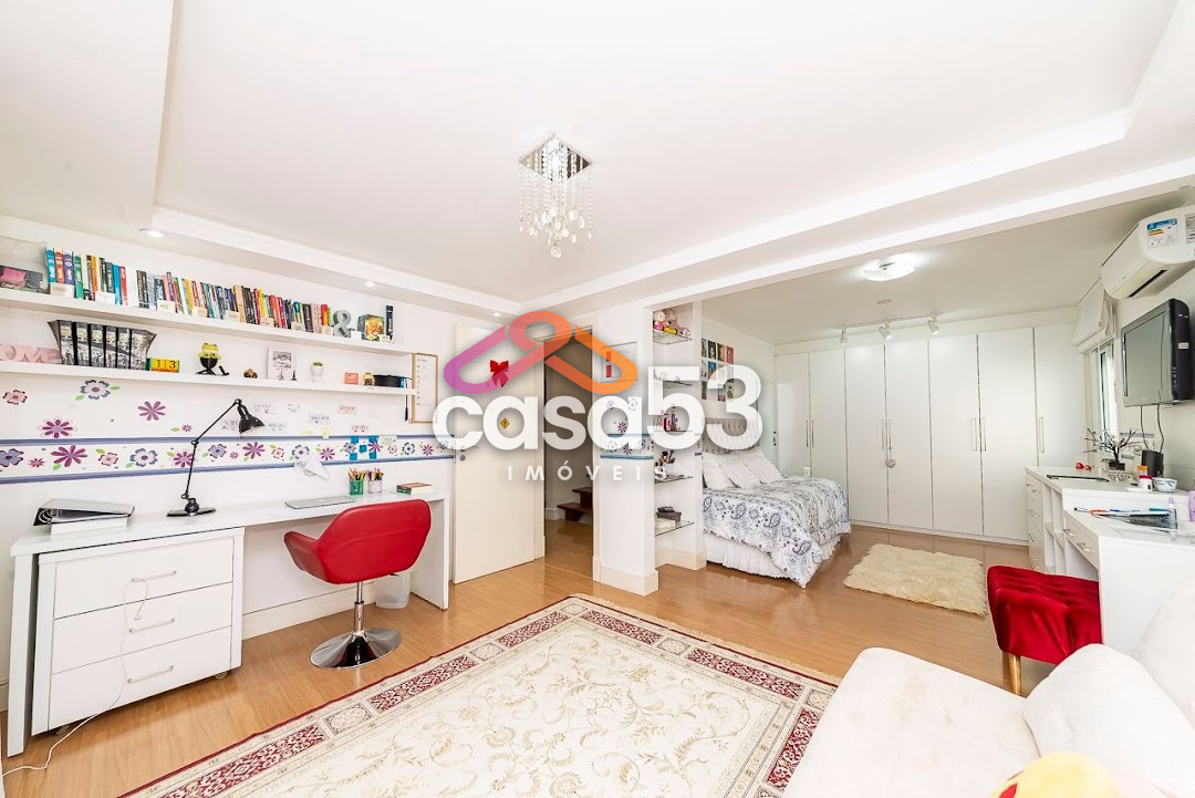 A casa possui 6 quartos sendo uma suíte master e 3 suítes, uma ampla sala no primeiro andar e outra no segundo, 6 banheiros, 1 lavabo, cozinha em conceito aberto e um grande espaço gourmet com churrasqueira.