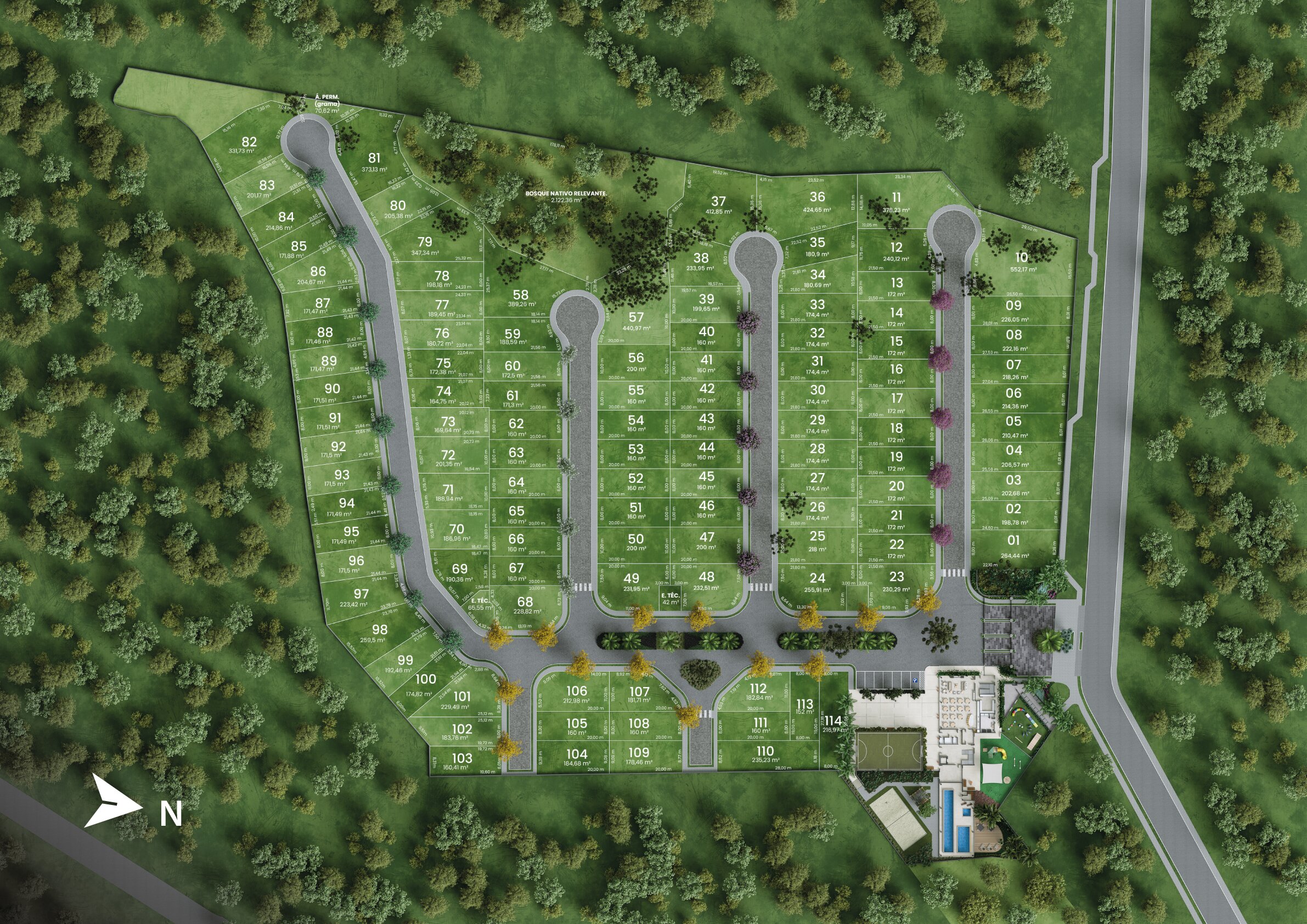 TERRENOS PRIVATIVOS Lotes de 152 m² a 552 m². Sugestão de projeto para casas de 219 m² com 3 suítes e ático.